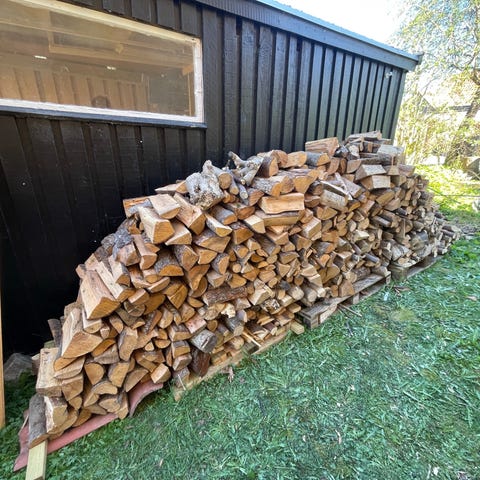 Brænde af blandet sorter. Fældet og kløvet i marts 2026.