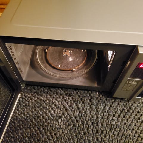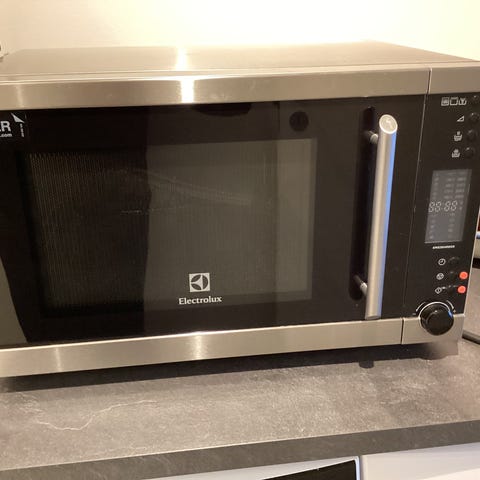Sharp mikrobølgeovn i sølv. Modellen har drejetallerken i glas og front med mørkt vindue. Egnet til opvarmning og optøning af mad i køkkenet. 20 liter 800 watt, med grill. Knap 2 år gammel.