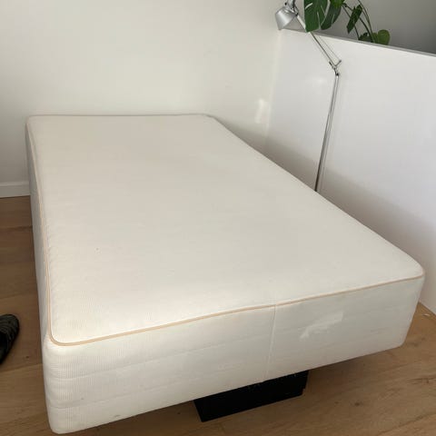 Sengen har små ben (billede 4), men der er mulighed for at sætte højre ben på vis ønsket (billede 5).
