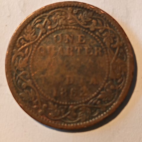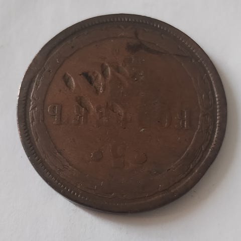L-1079 - Nova Scotia halfpenny token 1832 lidt skadet, men sjælden mønt Pris kr. 65,-