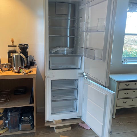 Gorenje køle-fryseskab i hvid. Skabet har flere justerbare glashylder, dørhylder samt en vin-/flaskehylde i køledelen. Nederst i køledelen er der en CrispZone-skuffe til opbevaring af frugt og grønt. Frysedelen har flere gennemsigtige skuffer, som giver overblik over indholdet. Manuel temperaturindstilling i toppen af køledelen. Velegnet til almindelig husholdningsbrug med kombineret køl og frys i ét skab. Indbygningsmodel. Fejler intet, 2 år gammelt