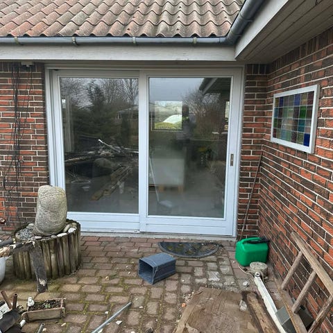 Skydedørs parti træ brun og 2 lags thermo