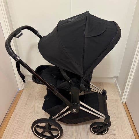 Kombivogn, Cybex Priam, Cybex Priam kombivogn i rigtig flot stand. Kan betjenes m én hånd og klapvogn lægges helt ned. Står nærmest som ny borset fra rift v håndtag, et par småskrammer på stel og misfarvning på logo (se fotos). Lige til at tage i brug, inkl madras, regnslag til både barnevogn og klapvogn samt kopholder. Fra røg- og dyrefrit hjem, har kun stået indendørs.