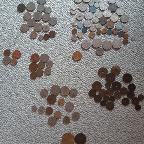 Danmark, mønter, Gamle spillemønter. Fra Tivoli og CAH Automatservice.