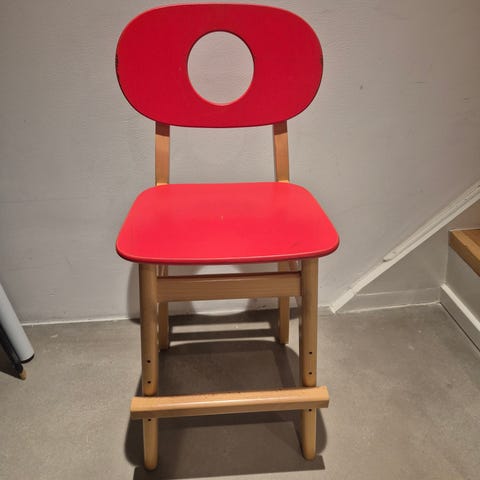 Børnestol i rød retro stil fra hukit, vil tro den passer til alder: 3-6 år.