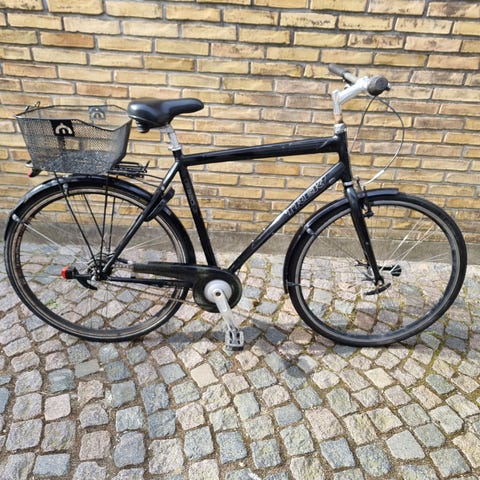 Centurion med stelstørrelse 59 L og 28 hjul. Cyklen har lige styr, fodbremse bag og fælgbremse foran. Udstyret med bagagebærer og kædeskærm. Egnet til daglig transport og pendling i by og på landevej for en rytter, der passer til en L-størrelse stel. Den har 7 perfektkørende gear og både fodbremser og håndbremser.