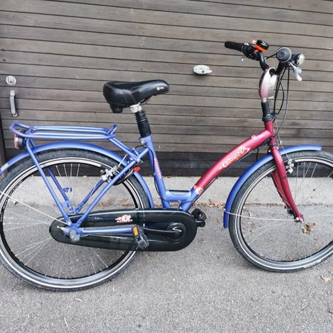 Kvalitetscykel i fin køreklar stand. Godkendt lås og lys. Passer 6-8år.