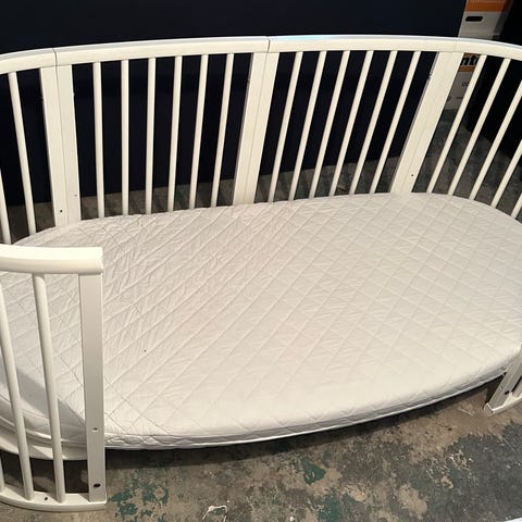 Sengen er lavet af træ med en hvid overflade. Uden madras. - Bemærk at mail, chat og beskeder ikke besvares, og varen skal købes på knappen "Gå til varen". Efter reservering af varen har du 10 dage til at afhente den i den butik, varen er på lager i.