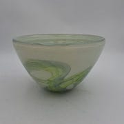 Dekorativ glasvase fra Rosendahl med unik form og farverige prikker i grønne og hvide nuancer, perfekt til blomster- eller planteopbevaring.