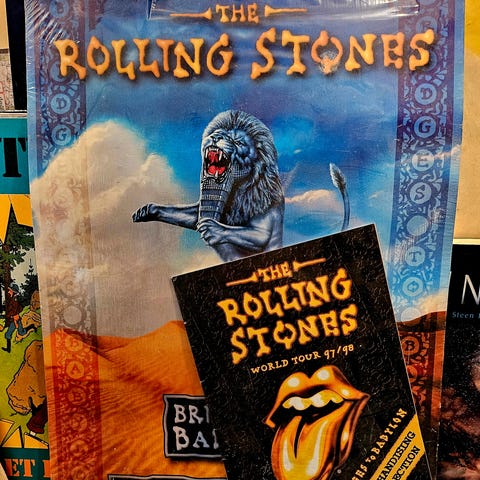 Andre samleobjekter, Tørklæde, The Rolling Stones tour tørklæde fra 1990 i parken. L. 97 cm. X 13 cm. Nyt.