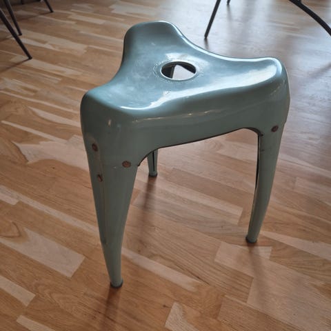 Olivengrøn Oneleg stol i højde 32cm med skridsikker base og sæde i aftageligt silikone. NYPRIS MED SÆDE OG SKRIDSIKKER BUND 660kr