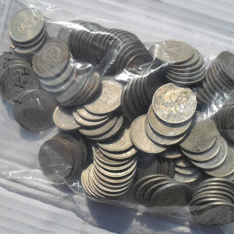 Møntsamling med blandede mønter i forskellige størrelser, farver og materialer. Samlingen består af flere bunker mønter, herunder sølvfarvede og kobberfarvede mønter. Egnet til samlere eller som materiale til hobby- og dekorationsprojekter. Nærmere oplysninger om pålydende værdi, årgange og oprindelseslande fremgår ikke af oplysningerne og bør kontrolleres ved gennemgang af mønterne.