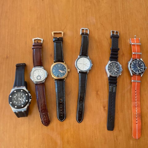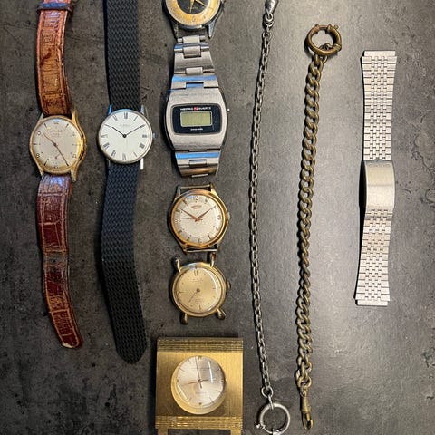 Fem ure, brugte men brugbare, to skal have skiftet batteri. Swiss Military Hanowa dameuret trænger til ny rem. Sælges samlet