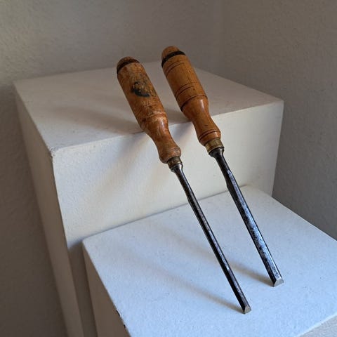 Sæt med tapjern 4, 6, 8 og 10 mm og knippel fra 1970. Er som nye.