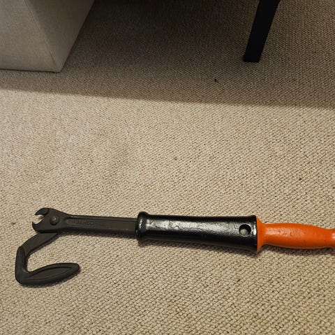 Tapjern afbindingsjern Bahco fra 1970 og knippel (Langeskov)