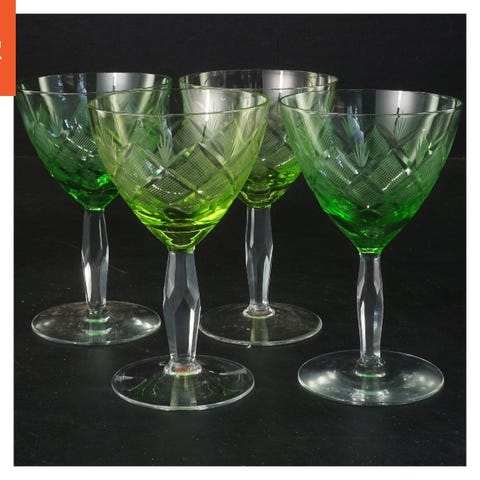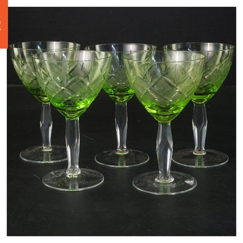 Lyngby Wien Antik hvidvinsglas i grøn. Sælges samlet og prisen er for alle fem.