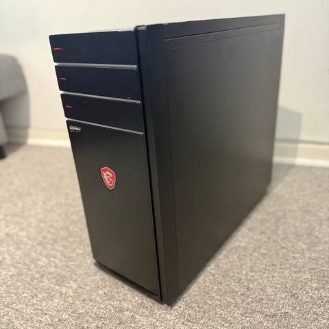 Hej, jeg sælger min gamle computer, bord, mikrofon og headset.