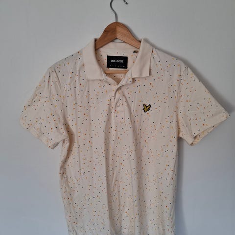 Lyle & Scott polo til herre i størrelse L. Klassisk kortærmet polo med krave og knaplukning foran. Trøjen er lilla og fremstillet i bomuld. Lyle & Scott-logo broderet på brystet.