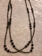 Halskæde, plast, Lang halskæde med grønne perler i 2 størrelser sat sammen i fint fortløbende mønster. Halskæden er totalt ca 136 cm lang - dvs. ca. 68 cm når man har den rundt om halsen. Kan sagtens køres 2 gange rundt om halsen og får dermed en diameter på ca. 23 cm. Meget flot og dekorativ og i fin intakt stand. Giv gerne et bud hvis du er interesseret. Fra ikke ryger hjem. Afhentet eller plus 58 kr. til forsvarlig forpakning og forsendelse med tracking.