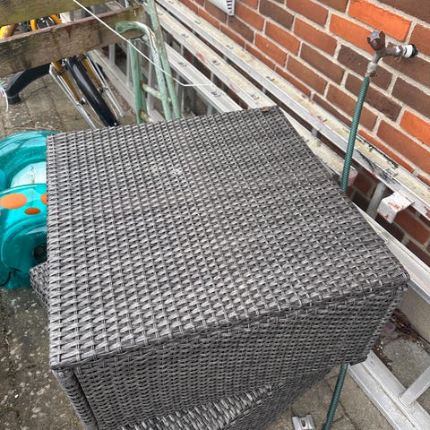 Havebord i sort kunstflet. Bordet er egnet til udendørs brug på terrasse, altan eller i have. Overfladen er flettet plastmateriale, som er let at rengøre og vedligeholde. Velegnet som sidebord eller sofabord i havemiljøer.