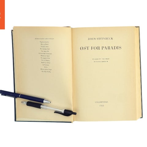John Steinbeck Øst for Paradis bog i hardback-udgave på dansk. Udgivet af Gyldendal. Bogen har orange lærredsbind med forfatterens navn på forsiden og ryggen. Indholdet omfatter romanen "Øst for Paradis" i dansk oversættelse ved Ella Smith og Mogens Klitgaard. Velegnet til læsere, der ønsker en klassisk roman i fysisk hardback-format på dansk.