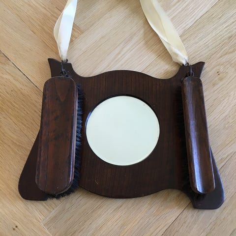 Sættet er lavet i metal af holdbart aluminium med flot kobberlegering (kobber bronzering), kosten både lavet i metal og af lyst træ samt lyse naturhår. Sættet er lavet omkring 1940'erne-1950'erne.