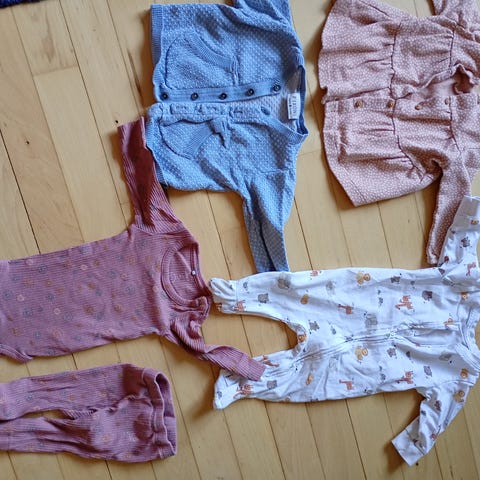 Blandet tøjpakke til nyfødt pige str 50-56 skal videre i systemet. Her er lidt af hvert, og mere end rigeligt. Noget er næsten nyt, noget har været lidt af hvert igennem. Sælges samlet