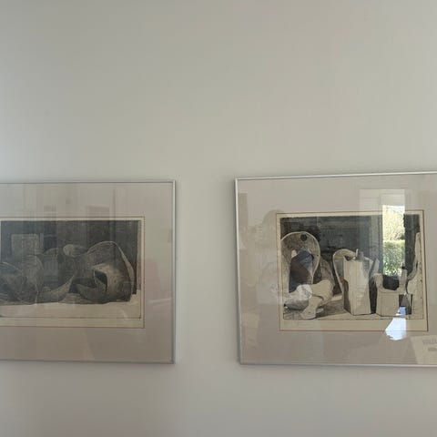 2 stk. 57 x 78 cm. litografier af Per Kirkeby. Nr. 51/150 Ingen skjolder. Sælges kun samlet for 6000 kr. De 12 tavler af Per Kirkeby kan følge gratis med, hvis de ikke er solgt.