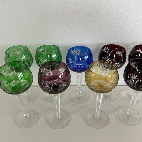 Rømer glas 7 stk 6 blå 1 mørkerødt