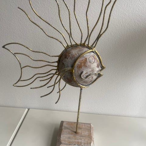 Håndskåret træfigur fisker brun
