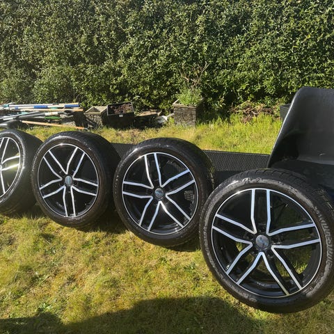 Super fine 17 tommer Fælge med dæk. Dæk har kørt 1 sæson. Alle fire Fælger er super fine..