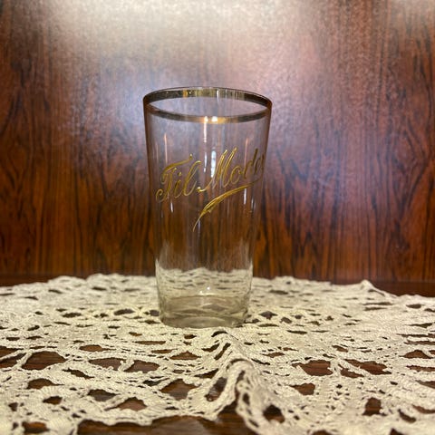 Antik fyrfadsstage i glas i rigtig fin stand. Den er rigtig gammel og prydet med kors og smuk enkel ornamentik. Har få bittesmå afslag i kanten, men den er formentlig også fra 40'erne.