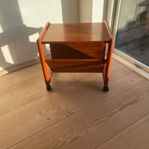 Flot serveringsvogn eller rullevogn i teak. Flot stand borset fra en lille ring på bordpladen.