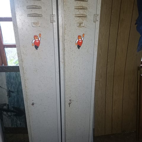 Sælger 2 solide metalskabe med masser af patina og råt look. Perfekte til værksted, garage, lager eller som indslag i bolig/indretning.