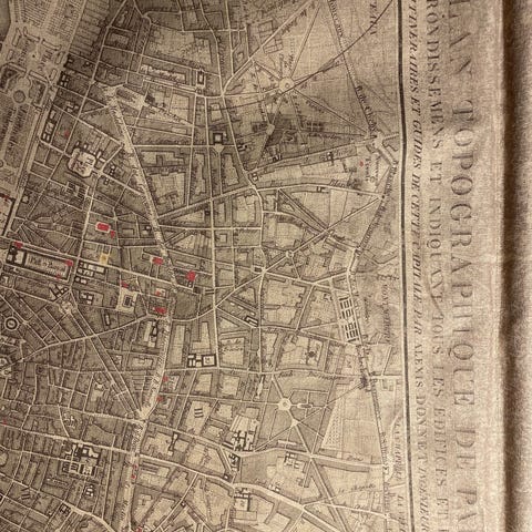 'Hafnia Copenhagen' Fransk Kort over København 1587 i meget stor størrelse fastgjort på 6 rammer.