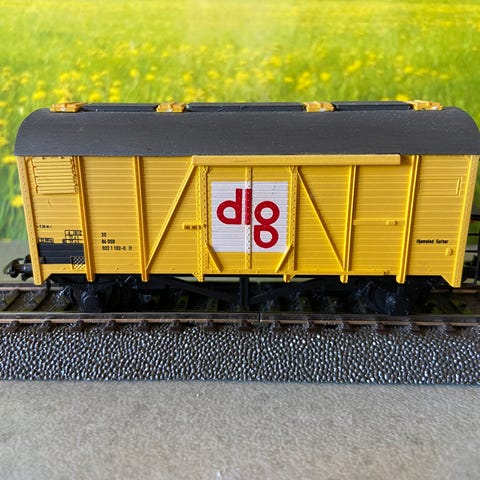 Electrotren 5566K godsvogn DSB Gods Habis modeltog. Model af skydedørsvogn med DSB Gods bemaling. Vognen leveres i original plastæske med mærkat angivet som "Schiebewandwagen DSB Gods Gattung Habis"