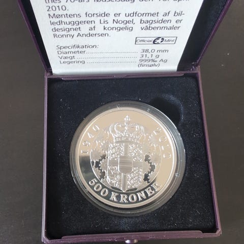 År 2010 sølvmønt 500 kr