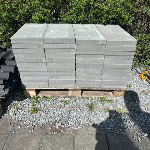 Helt nye og ubrugte. Super flotte lysegrå terrasse fliser B59,5 cm x H59,5 cm x D2 cm.