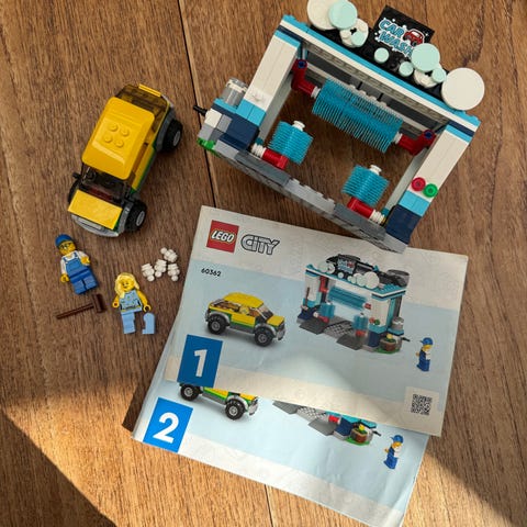 LEGO City byggesæt. Sættet forestiller en byscene med tankstation, bilvask og køretøjer samt minifigurer. Egnet til leg med by- og køretøjstema i LEGO City serien.