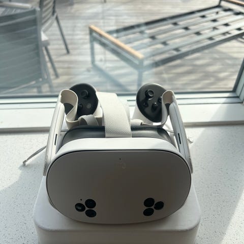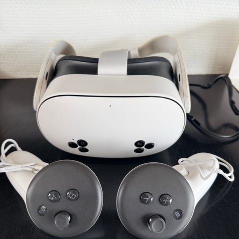 Meta Quest 2 VR-headset i hvid. Headsettet leveres med to trådløse controllere i hvid. Sættet omfatter desuden justerbar hovedrem, bæretaske/etui samt flere kabler til tilslutning og opladning. Velegnet til virtuel reality-brug i hjemmet, fx spil og multimedieoplevelser. Som ny har alle mulige ekstra køb såsom beskyttelses linser, behagelig pasform som kan indstilles meget nemt kabel til tilslutning af pc oplader etui og ekstra hoved rem. Spørg endelig hvis du har spørgsmål☺️