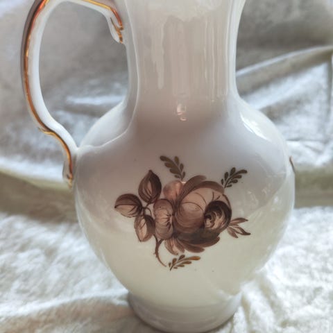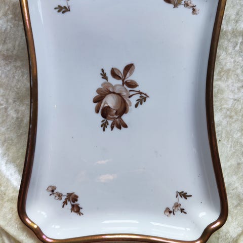 Royal Copenhagen porcelærskål hvid med brun blomst og guldkant