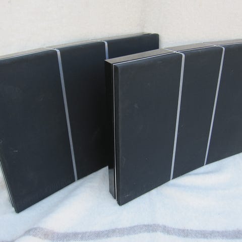 Der er monteret beslag så de kan stå skrå og der medfølger også væg beslag.