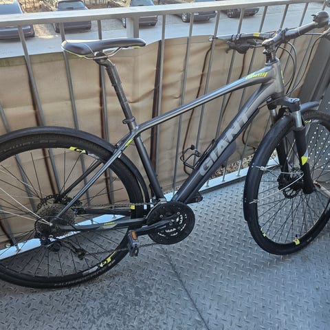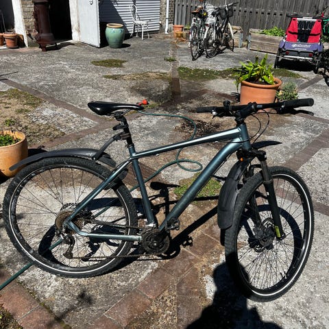 Udvendig gear med 18 trin at vælge i mellem. Det er en meget hurtig cykel, men med Tektro hydrauliske bremser der