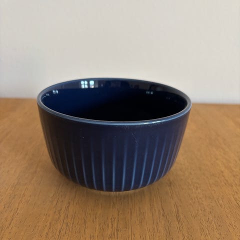 Rörstrand Koka skål i porcelæn. Skålen er hvid indvendigt og har blå dekoration på ydersiden. Velegnet til servering af fx dessert, snacks eller tilbehør ved borddækning. Serien Koka er kendt for sit enkle, grafiske udtryk og kan kombineres med andet stel i lignende farver.