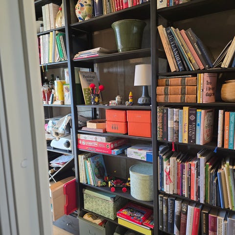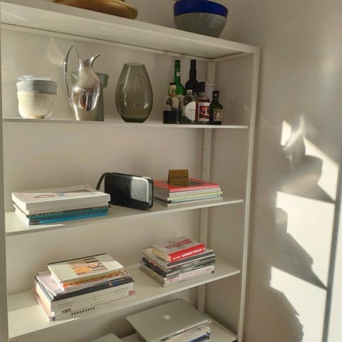 IKEA reolsystem til hjemmekontor. Reolen består af 15 åbne reolmoduler, velegnet til opbevaring af bøger, mapper og kontorartikler. Reolerne kan opstilles som man ønsker.