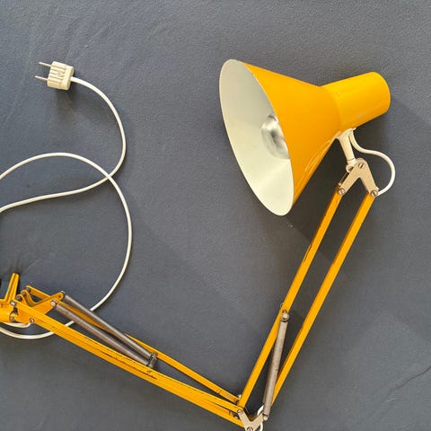 3 gamle arkitektlamper. En til montering på væg, den anden med bordstander og den tredje til montering på bord.