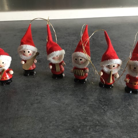 Ark med kravlenisser, Et lille korps af nisse-musikanter. Ældre ark.