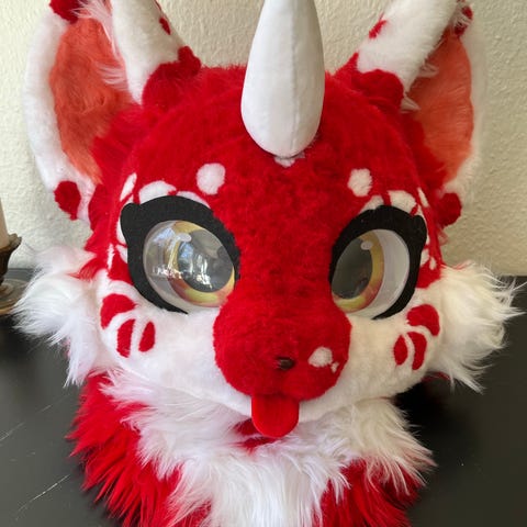 Sælger dette fursuit hoved fordi jeg kan ikke passe og har desværre ikke plads hoved kommer ikke med karakterer rettigheder det er nogle synlig tråde men kan fiske det hvis der er brug for det !