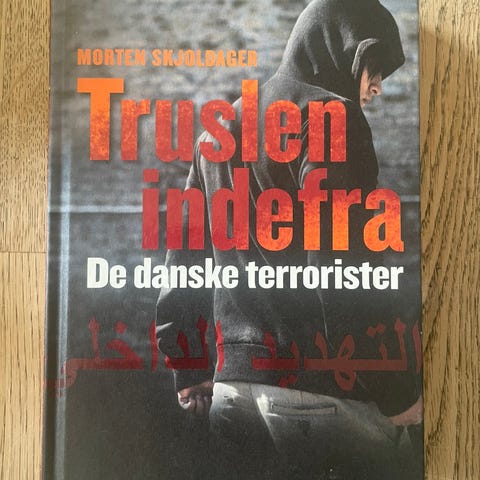 Truslen indefra - De danske terrorister, Morten Skjoldager, emne: historie og samfund, Hardbacken er ubrugt og derfor som ny indvendigt. Udvendigt er bogen i pæn stand bortset fra en lille ridse øverst på bogens forside (se sidste billede). Bagsidens nederste venstre hjørne har også fået et lille tryk (se billederne 2 og 3).