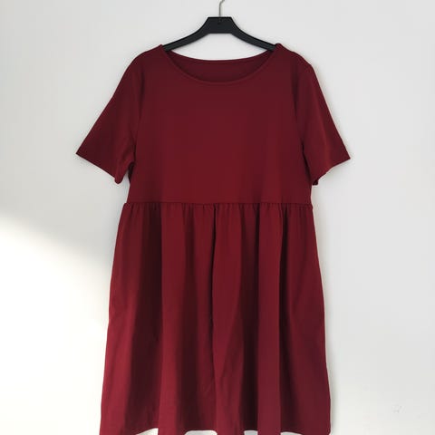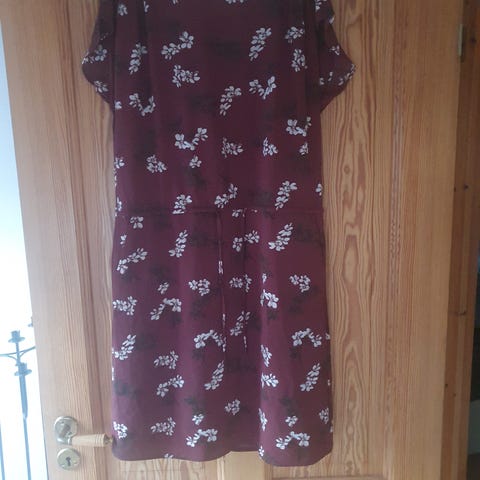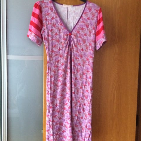 Super fin lyserød / pink kjole med lommer, fine ærmer, smock og bindebånd på ryggen.